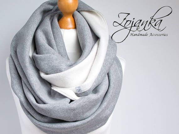 Chunky Knit Jersey Infinity Scarf: Gray & Off-White Hooded Snood