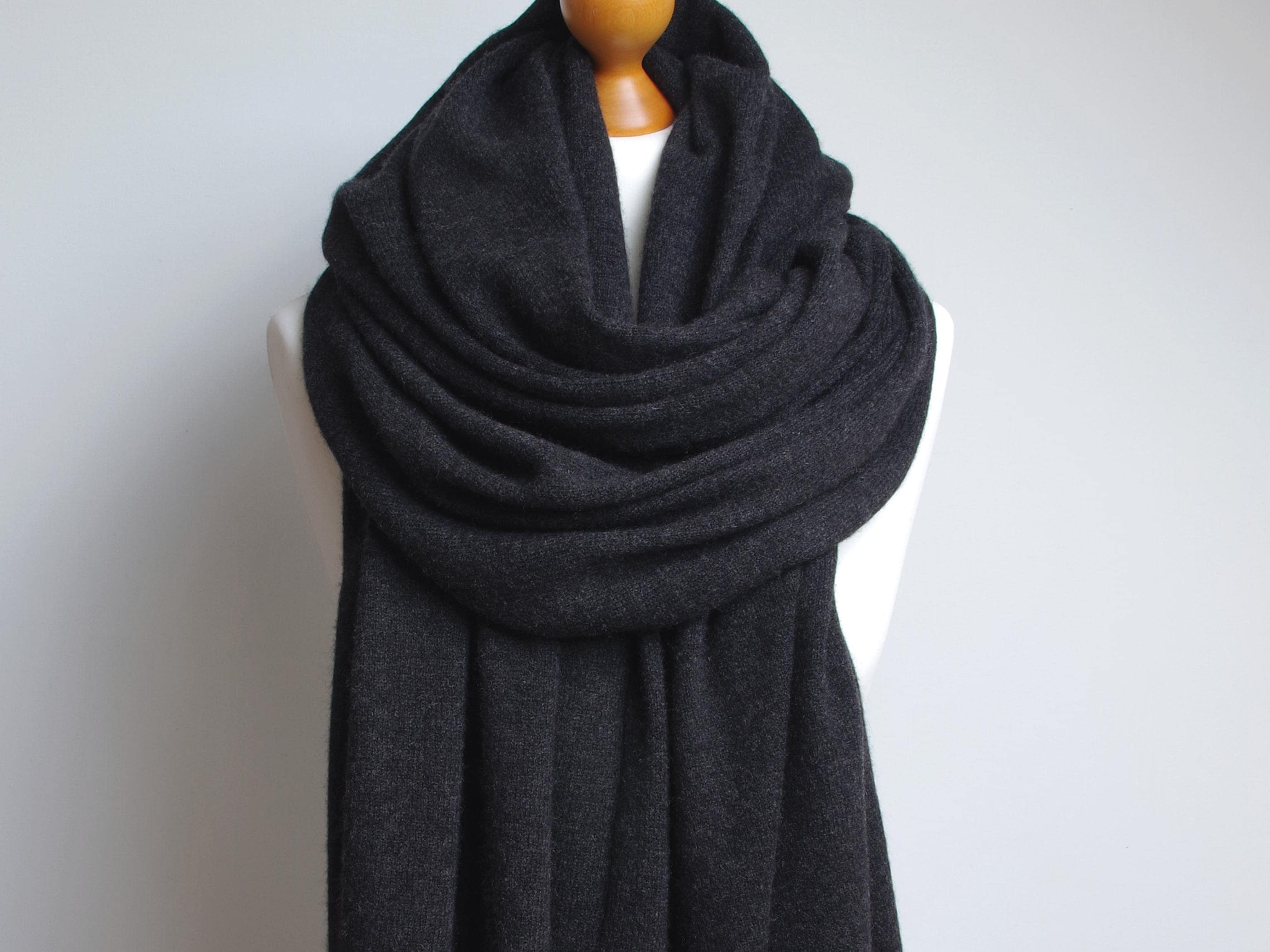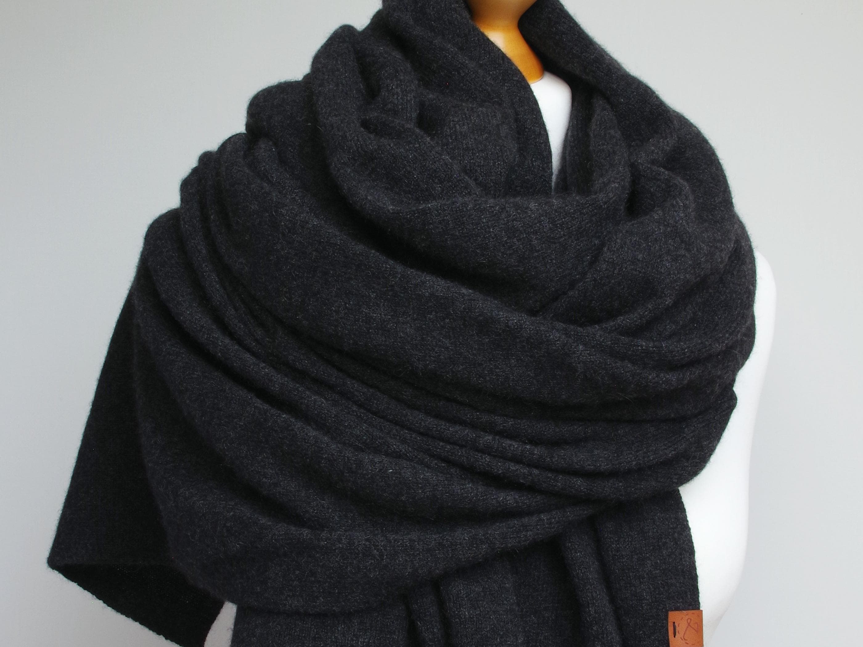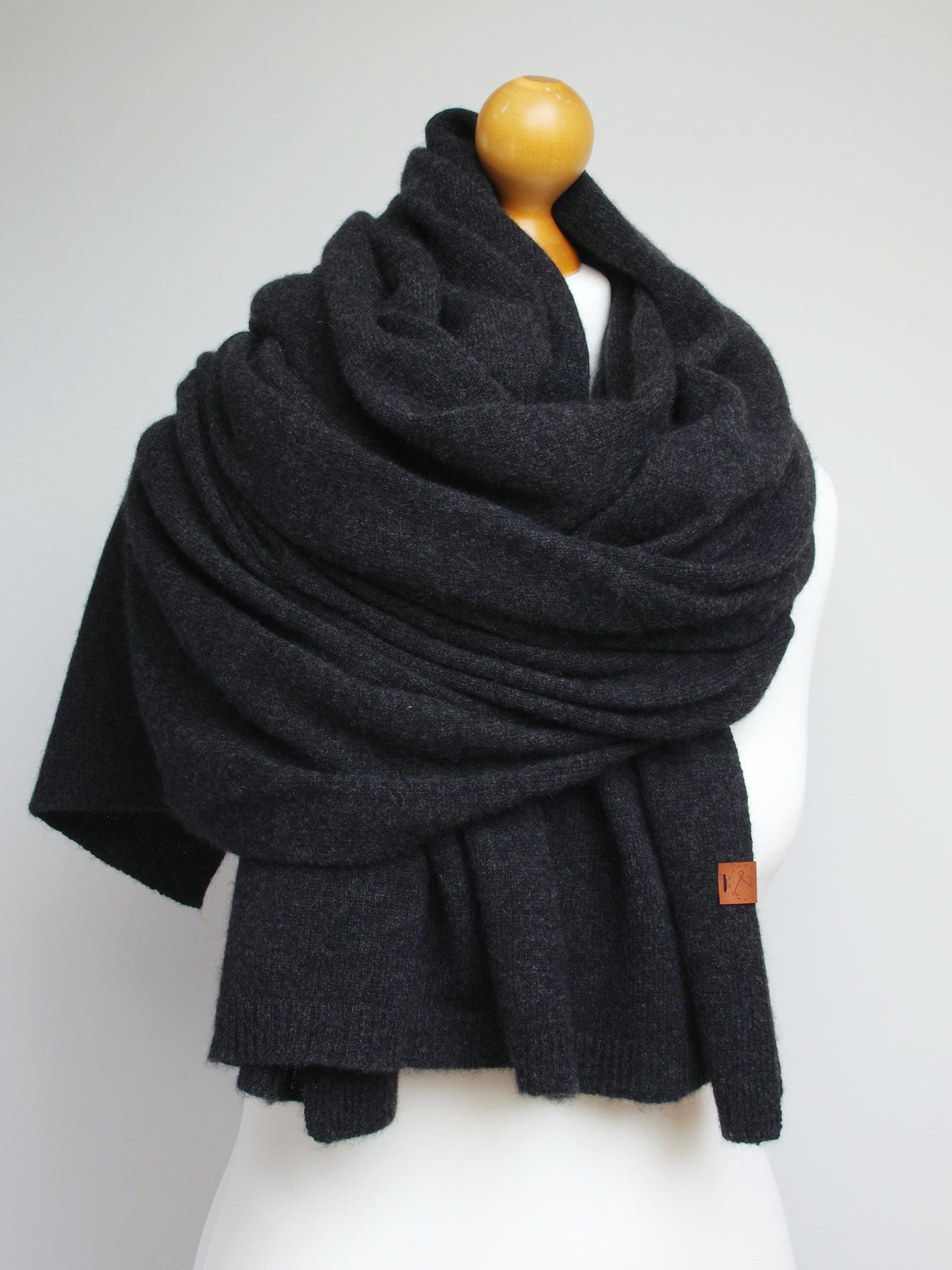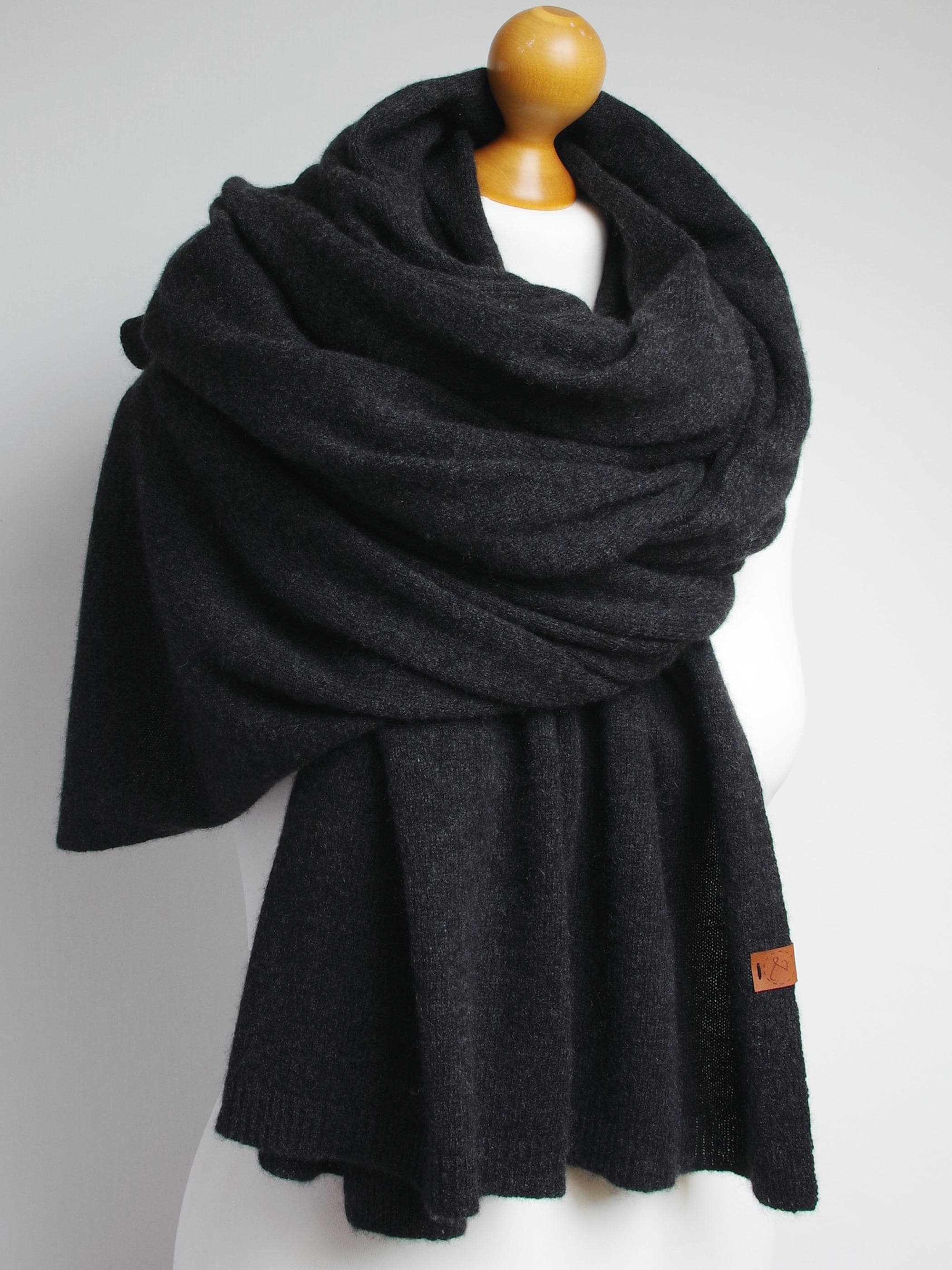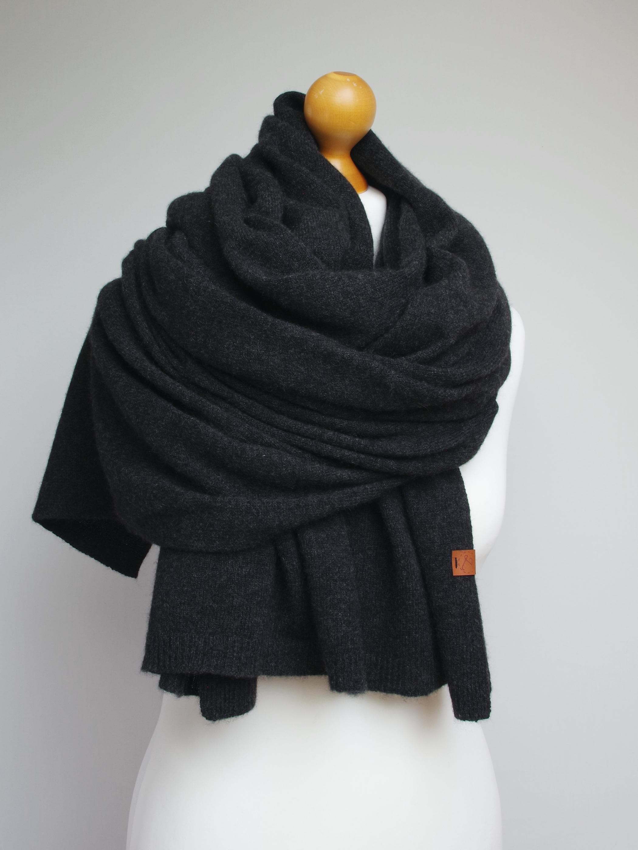 Large oversized winter shawl wrap for women. This premium wool knitted shawl, wrap scarf in dark charcoal melange color is a great company for cooler seasons. This scarf is very soft and warm, comfortable to wear, lightweight but yet very cosy.