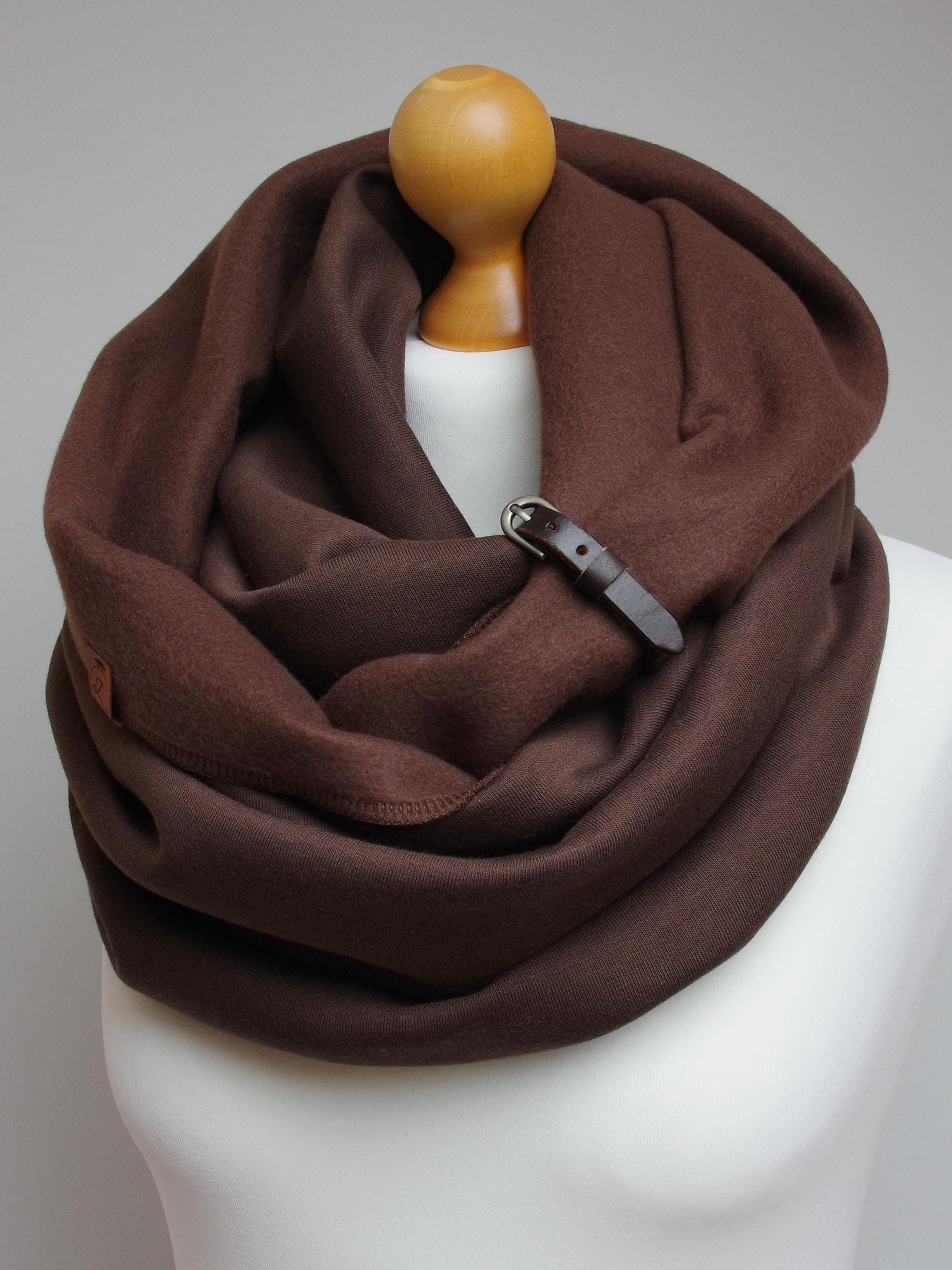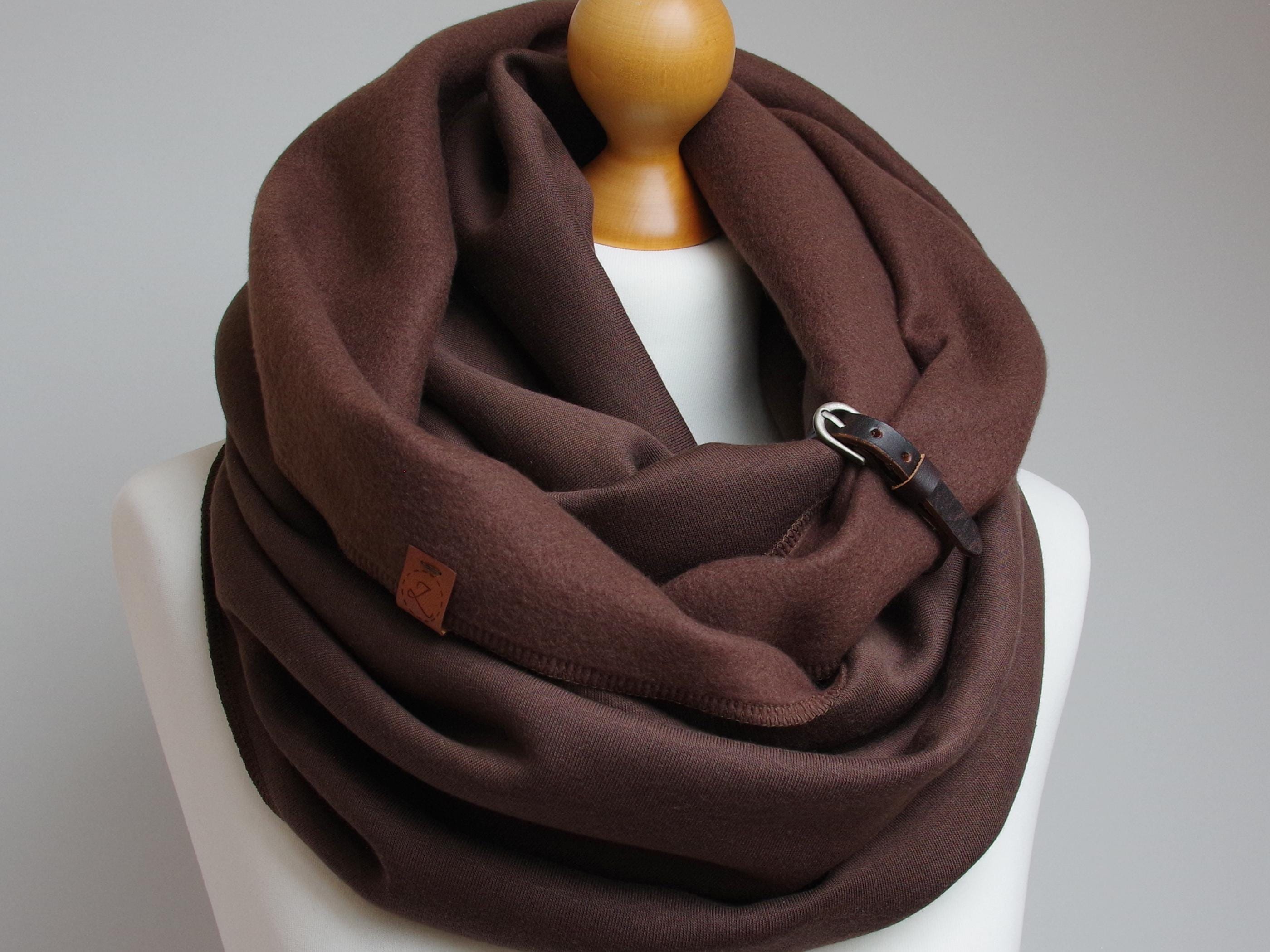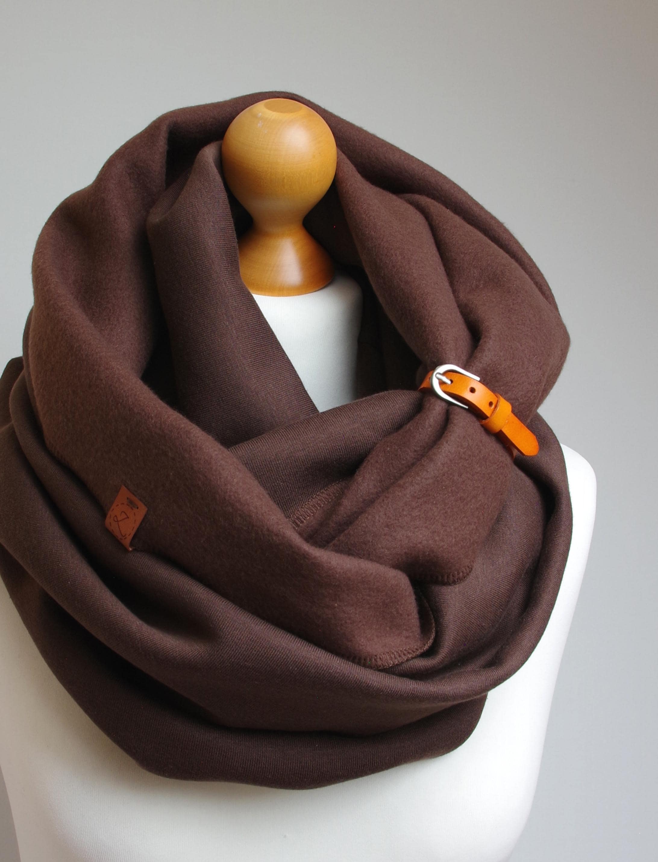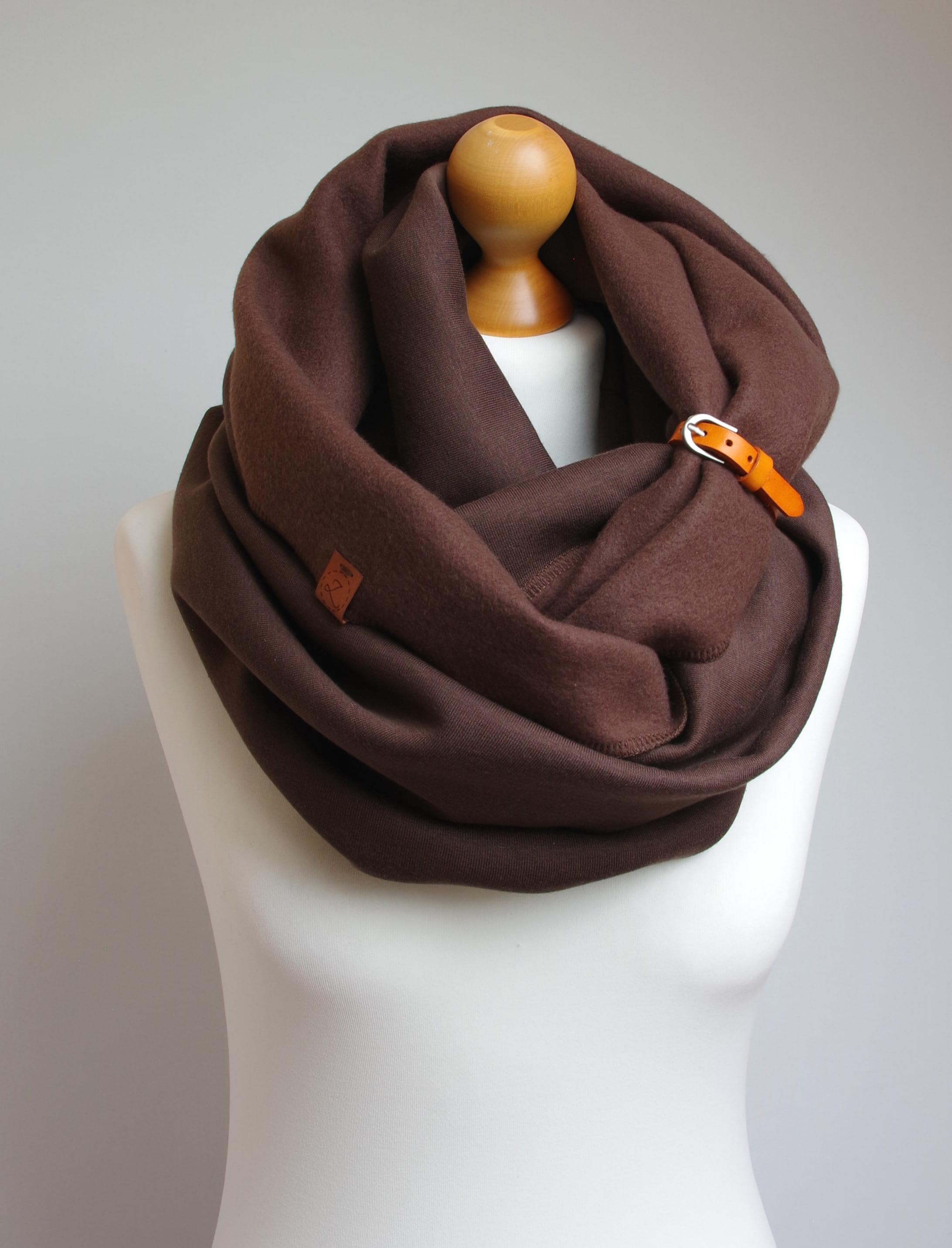Chunky Oversized Infinity Scarf with Leather Strap – Cotton Jersey Loop Scarf, Cozy Winter & Autumn Accessory