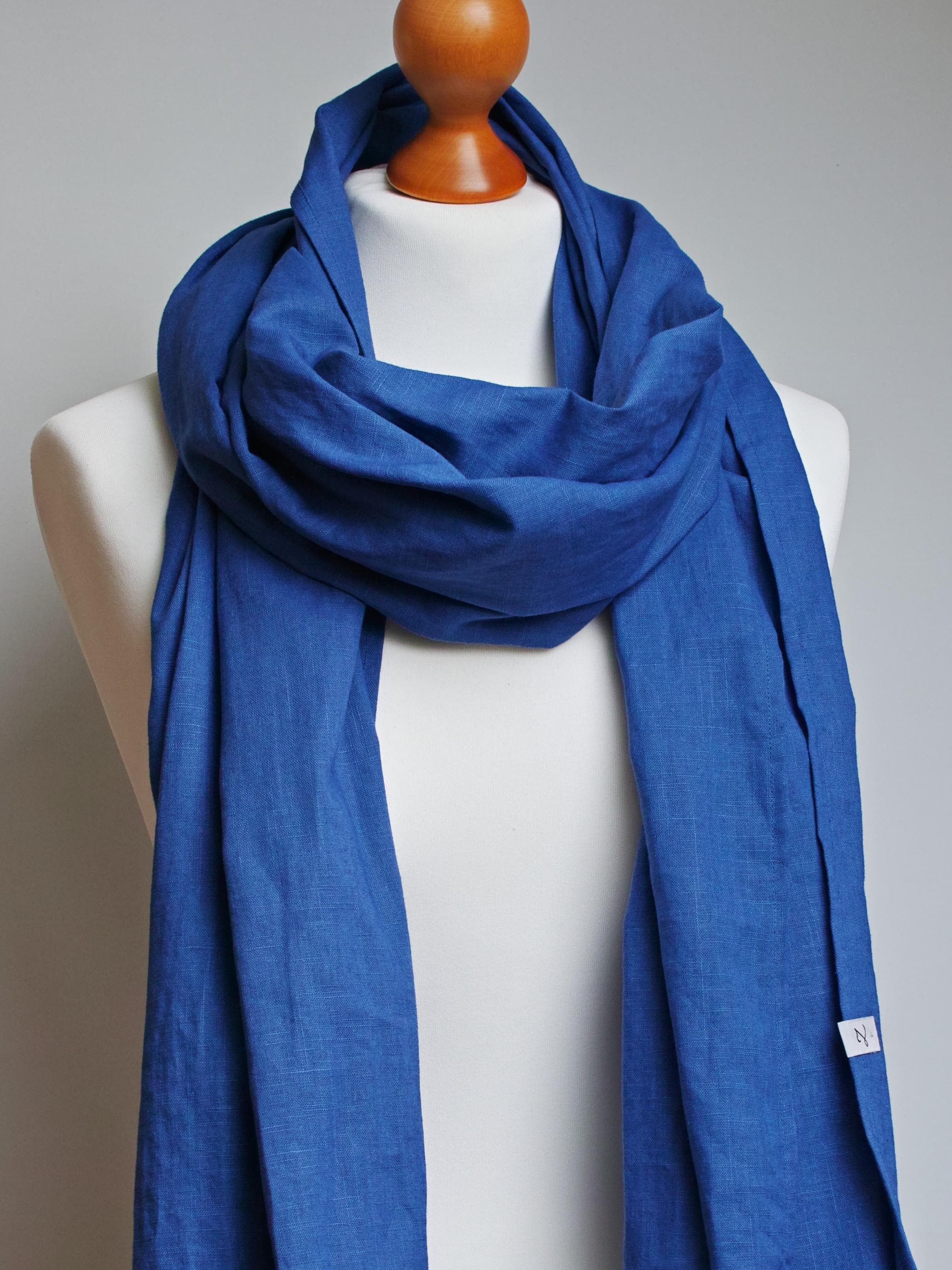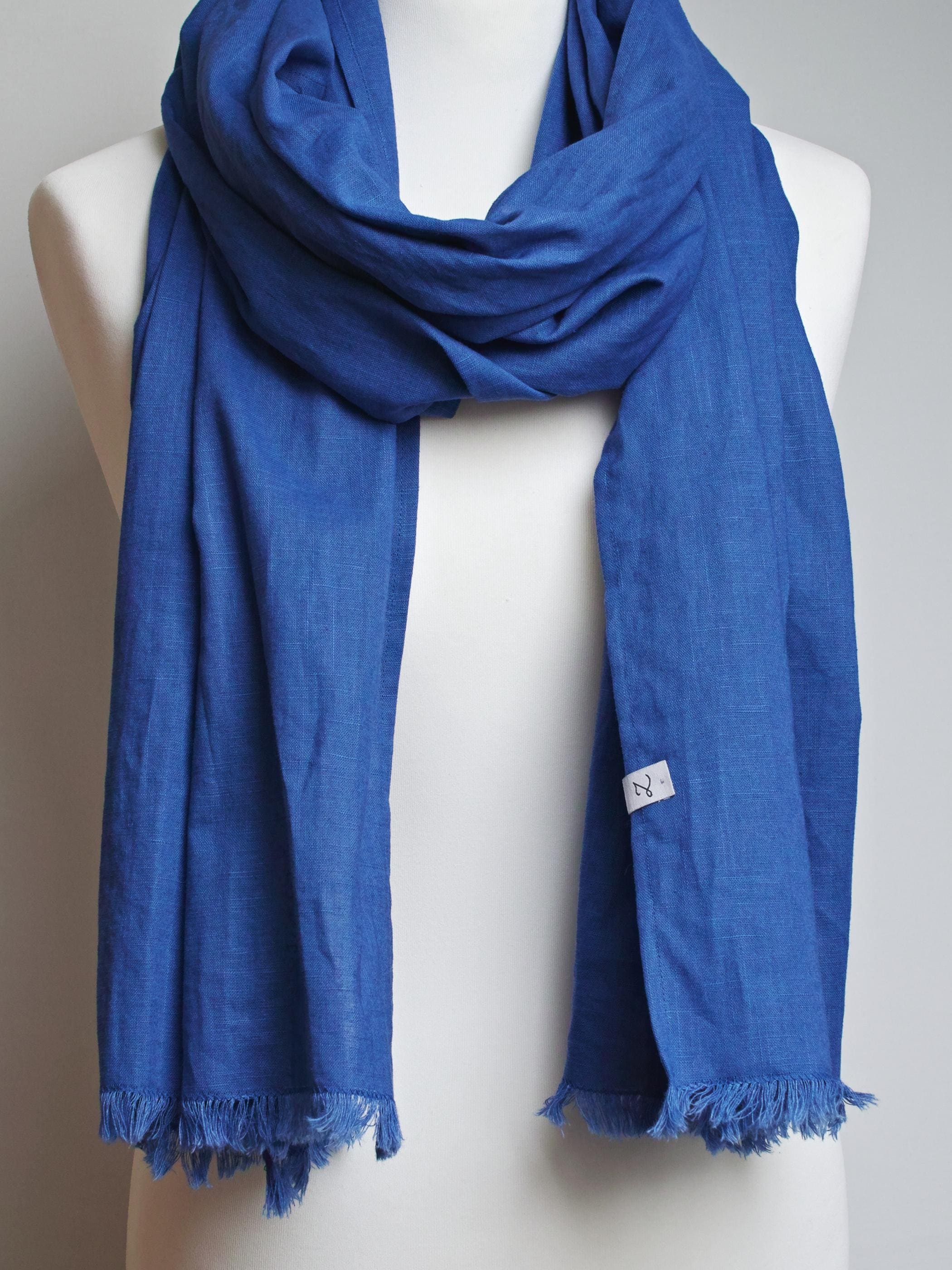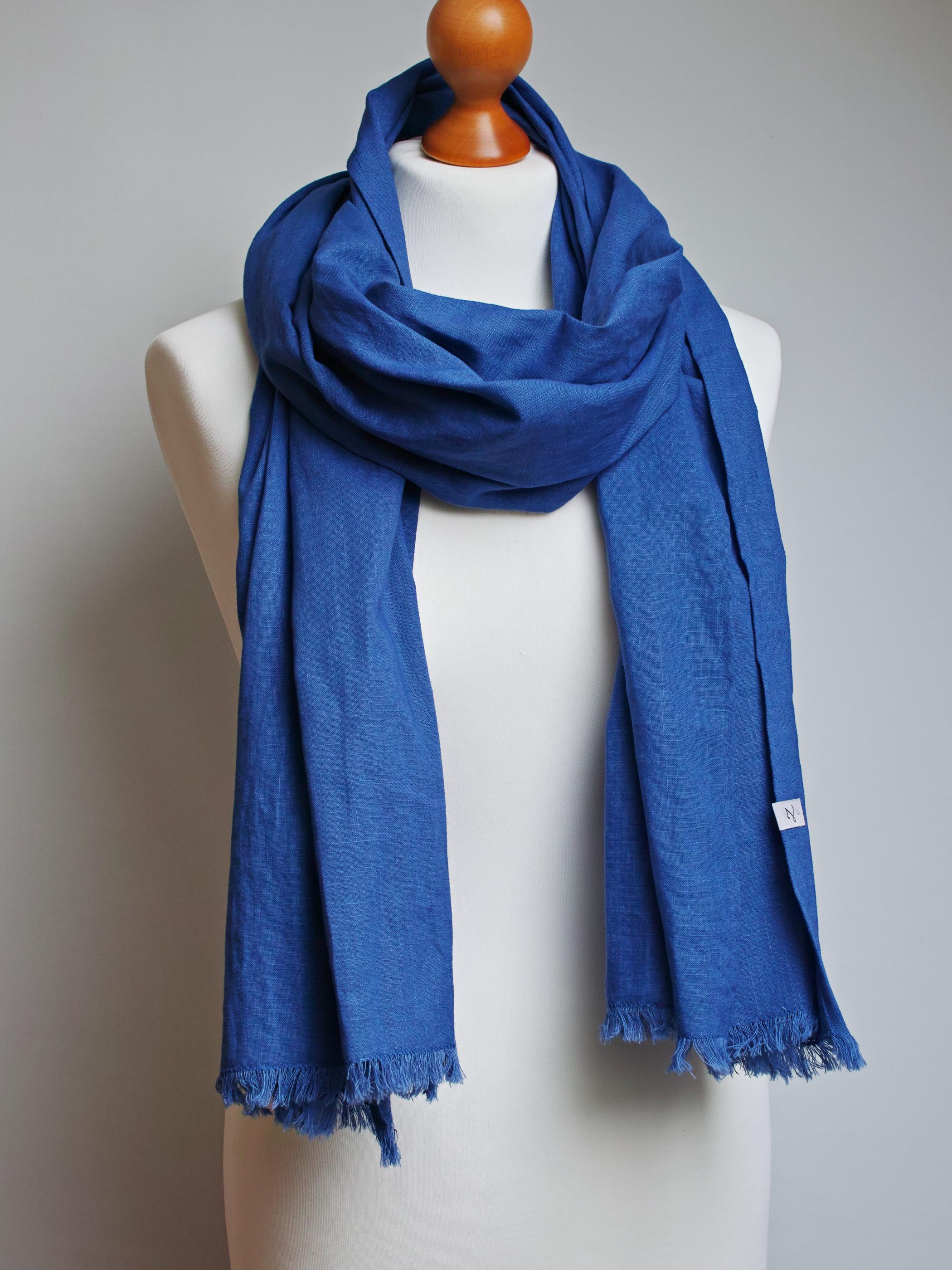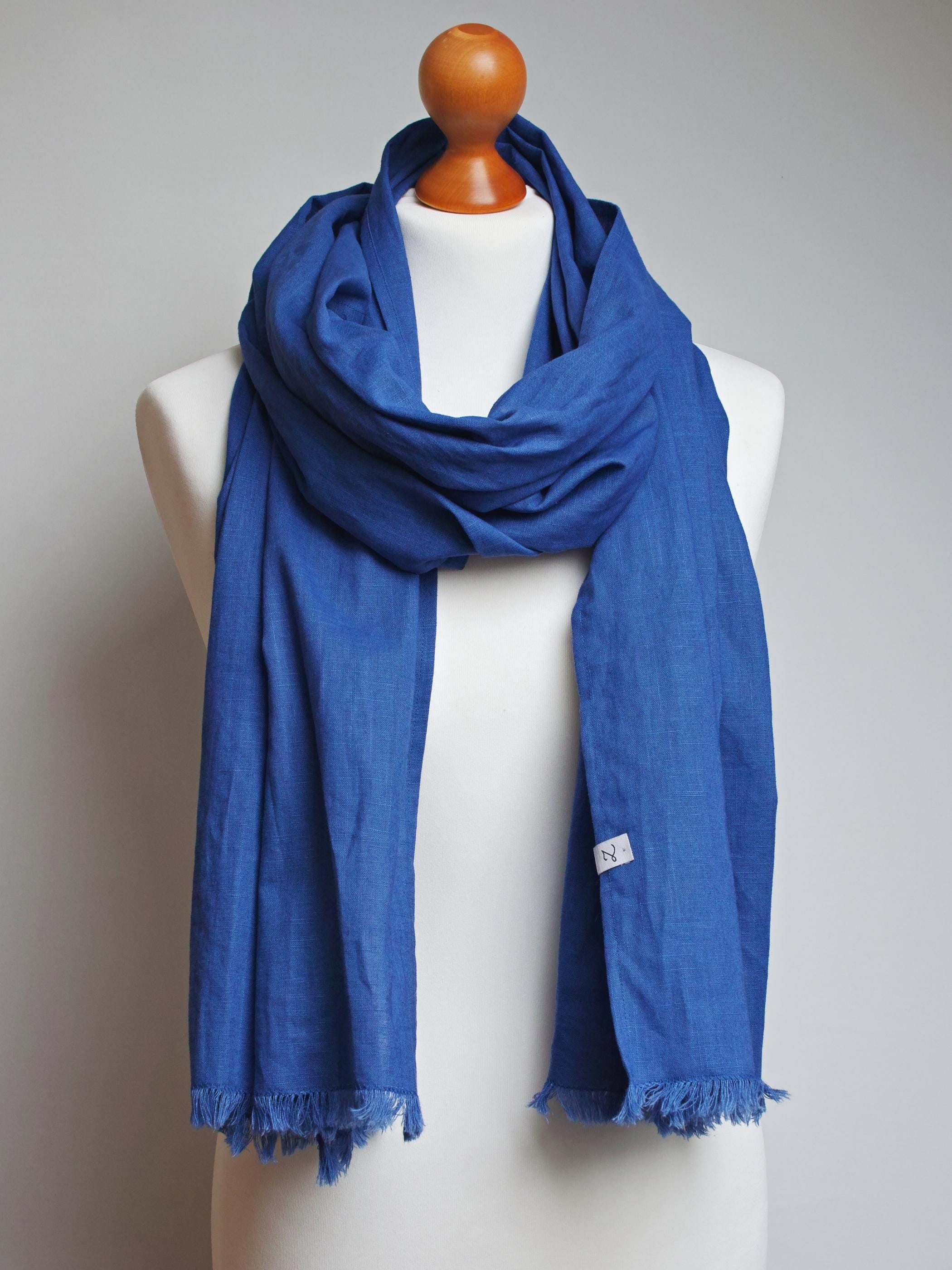 Cobalt Blue Linen Scarf – Medium Weight Polish Linen Wrap