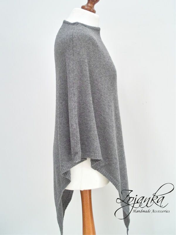 Lovely knitted poncho in gray colour. This poncho is very soft and comfortable to wear. Poncho is mediumweight.