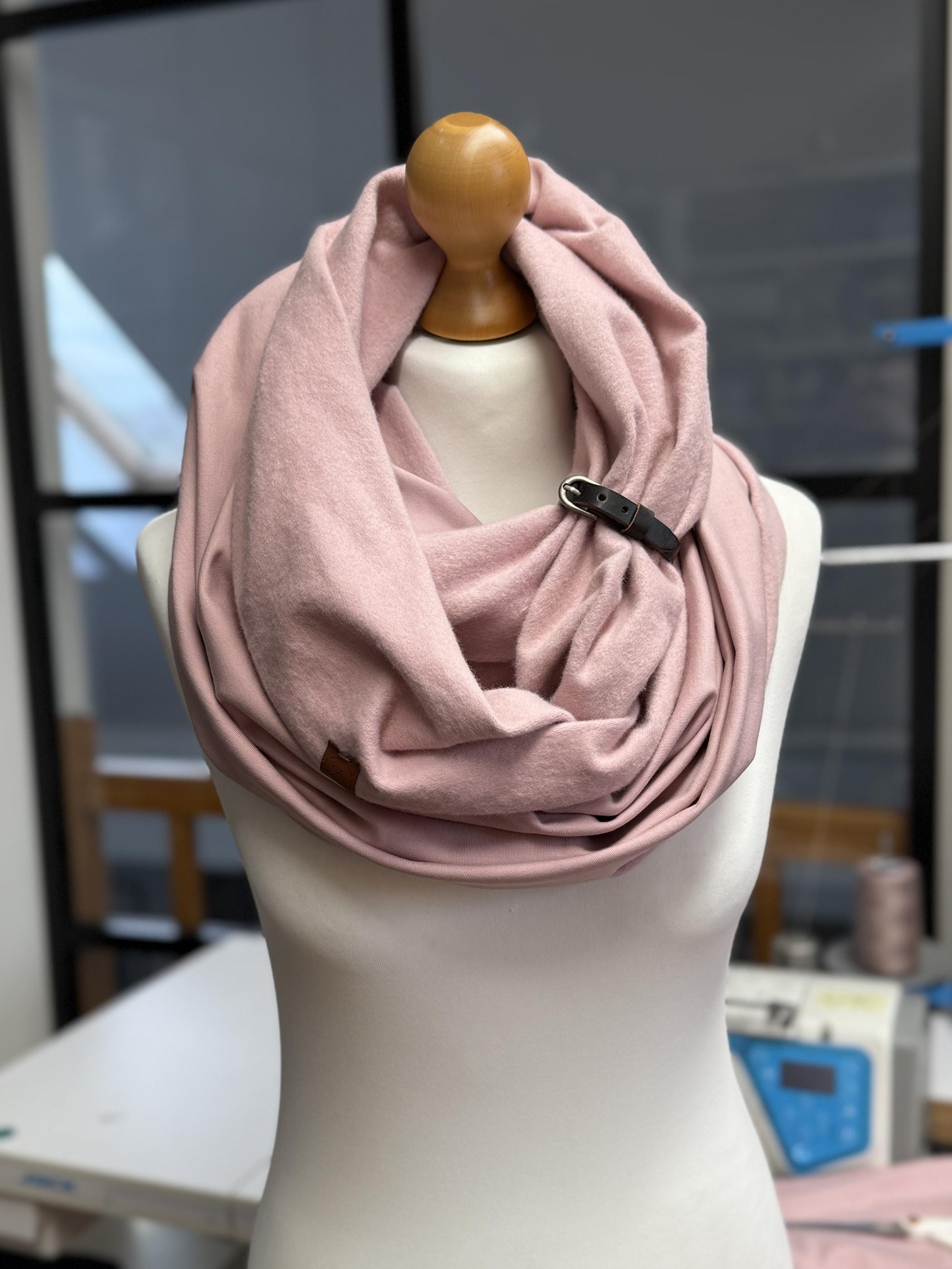 Winter infinity scarf in rose pink shade. This soft and cosy scarf will keep you warm and fashionable this season.