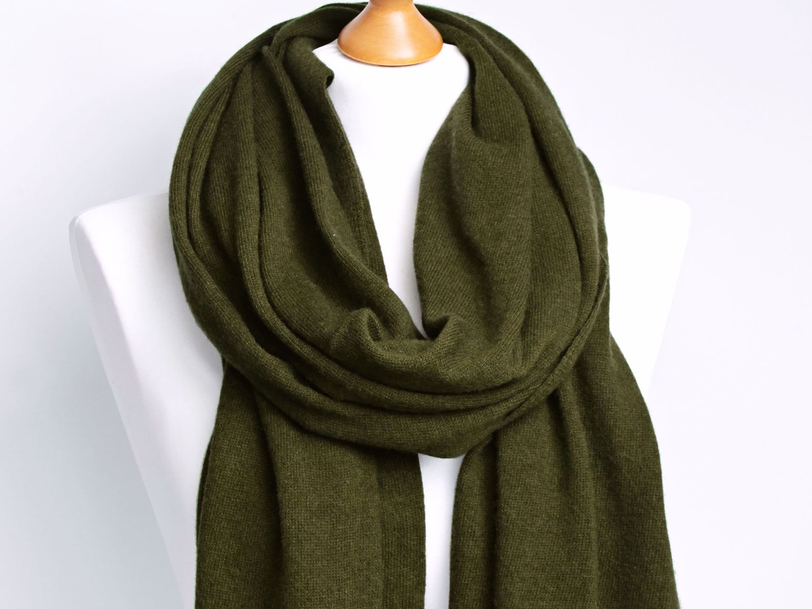 Lovely knitted wool scarf / wrap in deep green/khaki color. This wool scarf is very soft and comfortable to wear. You can wrap yourself this winter and it will keep you cosy and warm.