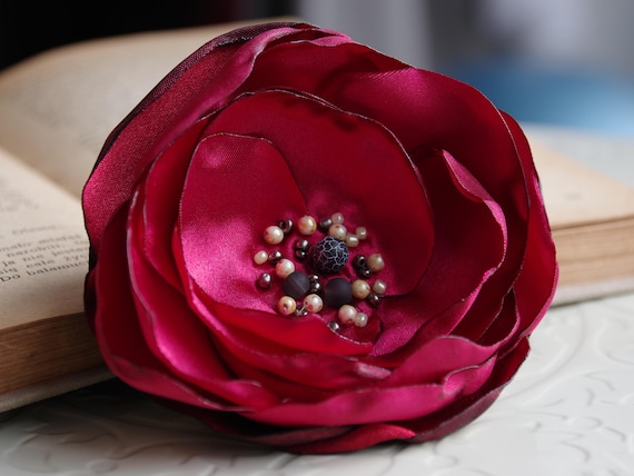 Handmade Satin Flower Brooch: Beaded Corsage Pin